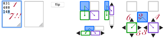 Each arrow nudges the green or purple tile (see the bottom of the video) one grid position.