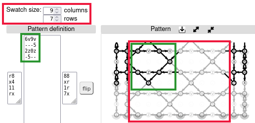 When sharing links to patterns, please keep in mind that others might have less powerful devices. Links to patterns with large swatches may block these devices. So create links with patch sizes just large enough to recognize the pattern, visitors can easily increment the size.